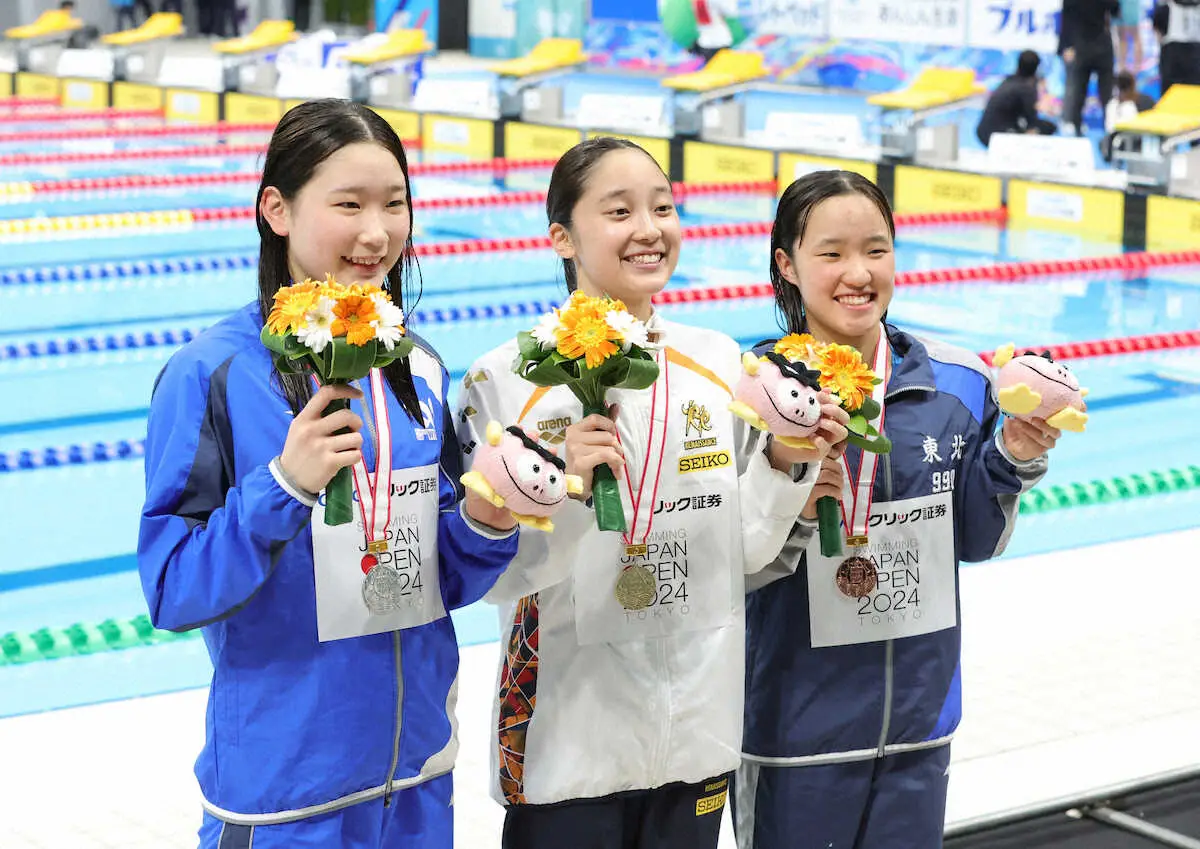 成田が得意の背泳ぎでトップに立ち、そのまま頂点に立った。東京五輪女子個人メドレー2冠でパリ五輪を最後に現役引退した大橋悠依さんに憧れを持つ。パリ五輪は400メートル個人メドレーで6位入賞したが、この種目は代表権を逃しており「大橋選手のように2個メも4個メも泳げる選手になりたい」と意欲を見せた。
