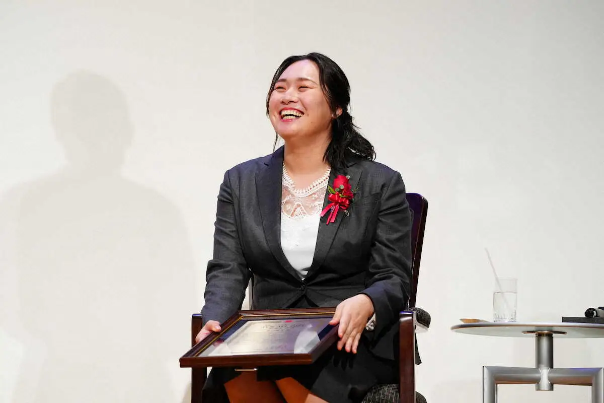 この壮大なプランを聞いた北口は「市長さん大丈夫かな…」と苦笑い。だが「モニュメントを作るなら、北口榛花ロード的なのがいいかなと。日本記録とか更新するたびに、ラインとか引いて…。記録更新するたびに、工事していただくようなものが出来上がったほうが、私的にはうれしいかなと思います。まだ市長には言えてませんが‥」とナイスプランを披露し報道陣をうならせた。