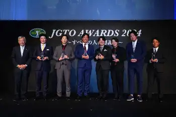 日本ゴルフツアー機構(JGTO)は2日、都内で24年男子ツアーの表彰式を行い、今季ツアー最多4勝を挙げた平田憲聖(24=ELECOM)が「最優秀新人賞 島田トロフィー」と「ゴルフ記者賞」の2冠に輝いた。最終戦で逆転されて賞金王初戴冠を逃した悔しさを胸に7日には渡米し、12日からの米ツアー最終予選会(フロリダ州)での米切符獲得を誓った。賞金王の金谷拓実(26=Yogibo)が最優秀選手賞を含む最多7冠に輝いた。