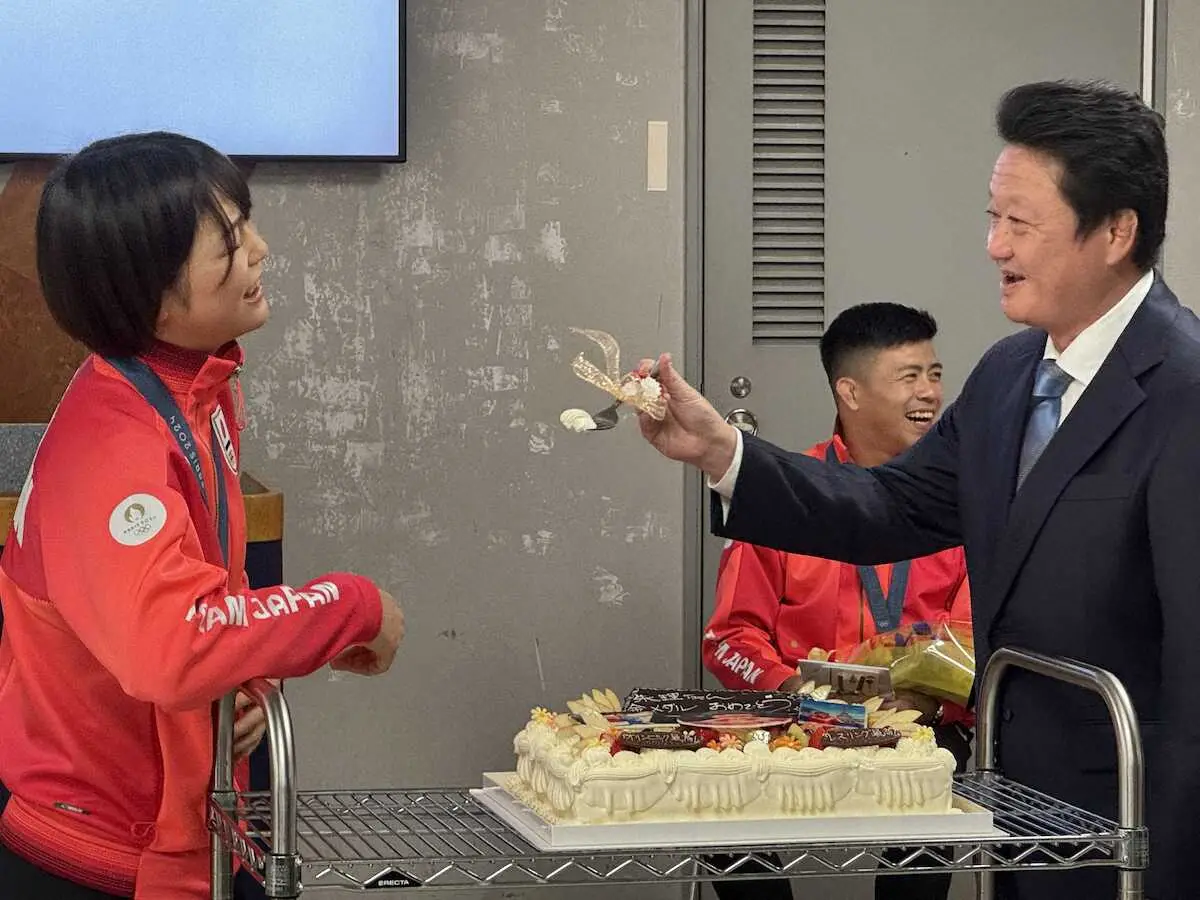 日体大レスリング部祝賀会に出席した(前列左から)文田健一郎、樋口黎、日下尚、清岡幸大郎、藤波朱理 Photo by スポニチ 藤波朱理「夢をかなえられた」日体大で五輪祝賀会 父とのファーストバイ… ギャラリーで見る この記事のフォト 2024年12月08日の画像一覧 もっと見る 2024年12月08日の画像をもっと見る