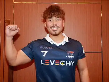 <リーグワンメディアカンファレンス>開幕戦で対戦する静岡のクワッガ・スミス(左)と神戸の日和佐(撮影・篠原岳夫) Photo by スポニチ 2024年12月09日の画像一覧 もっと見る 2024年12月09日の画像をもっと見る