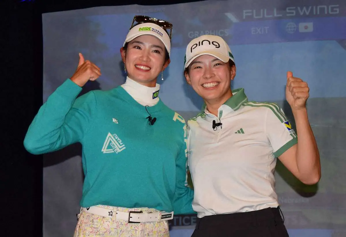 女子ゴルフの渋野日向子(26=サントリー)と原英莉花(25=NIPPON EXPRESSホールディングス)が13日、都内で行われたバーチャルゴルフ「TGX」のイベントに参加した。