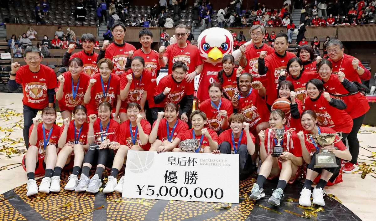1786人の観衆を集めて決勝が行われ、富士通がアイシンに65―55で勝利し、17年ぶり4度目の優勝を果たした。宮沢夕貴(31)が21得点、11リバウンドの活躍でMVPを獲得。第4Q途中までリードを許す展開だったが、終盤に逆転した。アイシンは今季から加入した渡嘉敷来夢(33)が21得点と奮闘。初めて決勝に駒を進めたが、頂点には届かなかった。