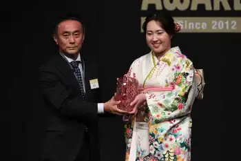 プロ3年目の今季は4月のツアー初優勝からメジャー2勝を含む8勝を重ね、2試合を残して年間女王戴冠を決める圧倒的な強さを見せた。華やかな振り袖姿で登壇し、「こんなに優勝できると思っていなかったのでびっくりしている。年間女王を獲ることができてうれしい」と笑顔を見せた。