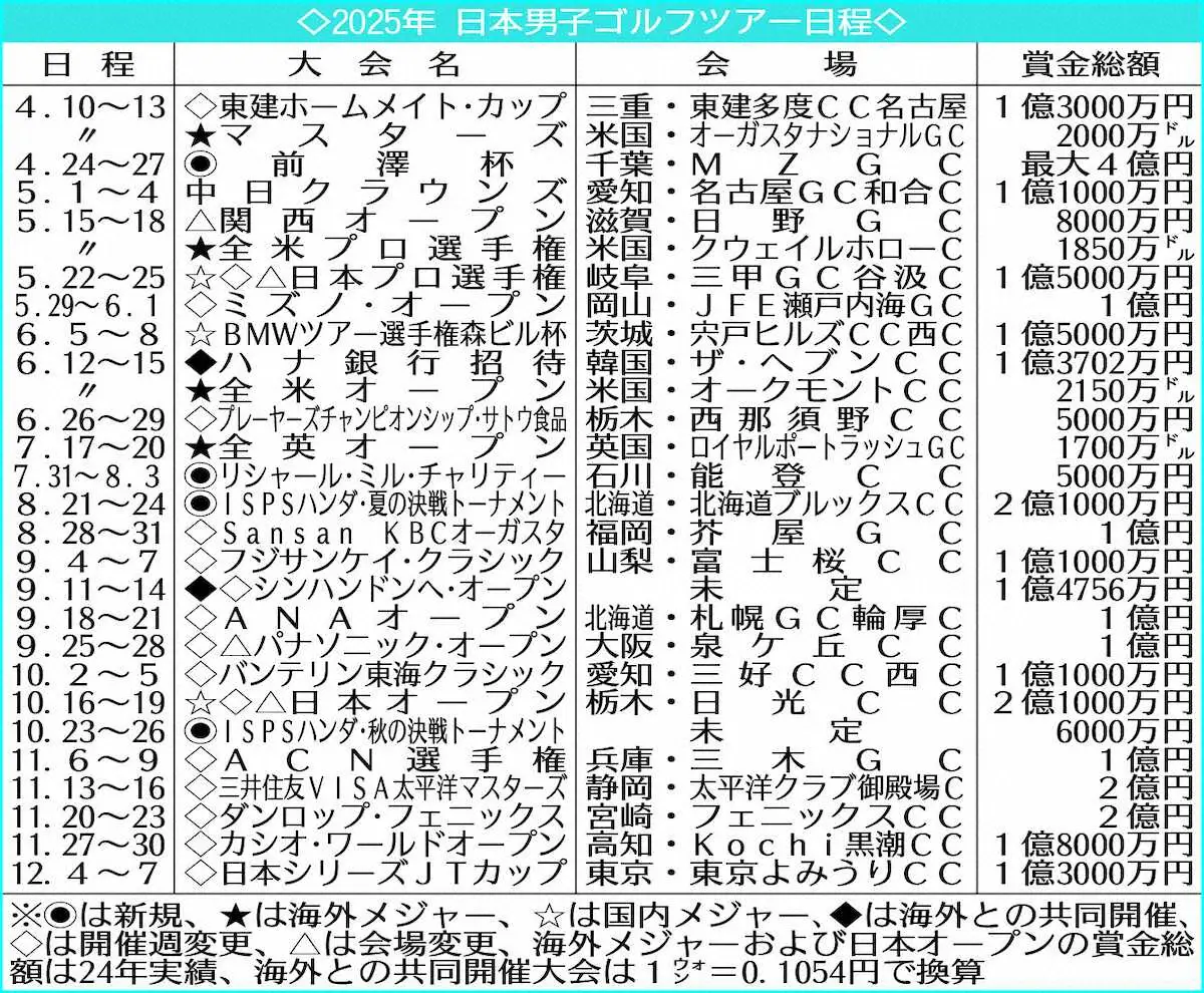 2025年日本男子ゴルフツアー日程