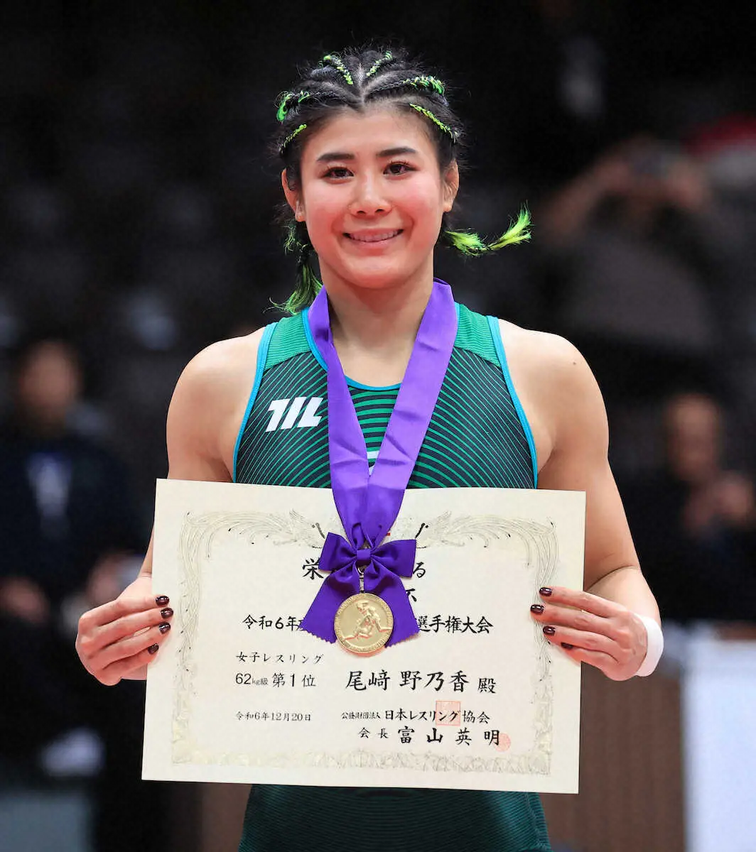 女子フリースタイル62キロ級は、今夏のパリ五輪同68キロ級で銅メダルを獲得した尾崎野乃香(慶大)が2大会連続4度目の優勝を果たした。尾崎はパリ五輪以来約4カ月ぶりの復帰戦。今大会に出場した唯一のパリ五輪代表でもあり、銅メダリストの意地を見せた。