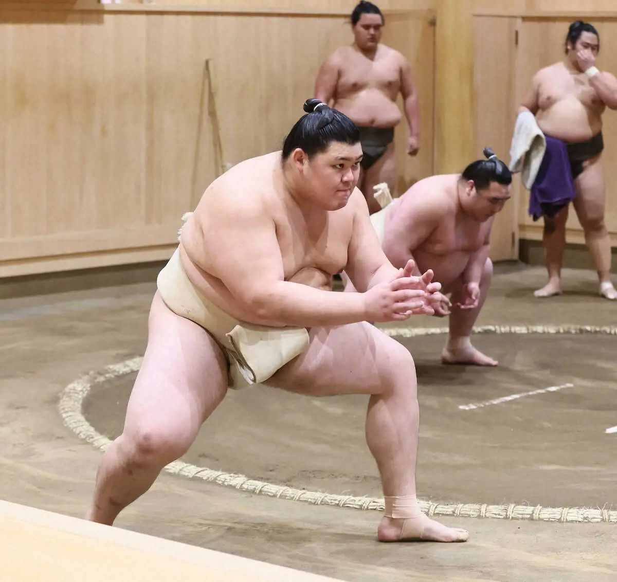 約3週間の冬巡業を終えたばかりの大の里は相撲を取る稽古は控え、若手に胸を出した以外は土俵の外で四股、すり足、てっぽうに終始。実戦稽古より基礎を重視した。「巡業は相撲を取る稽古が中心。おろそかだったので基礎を重点的にやることを意識している」と説明した。