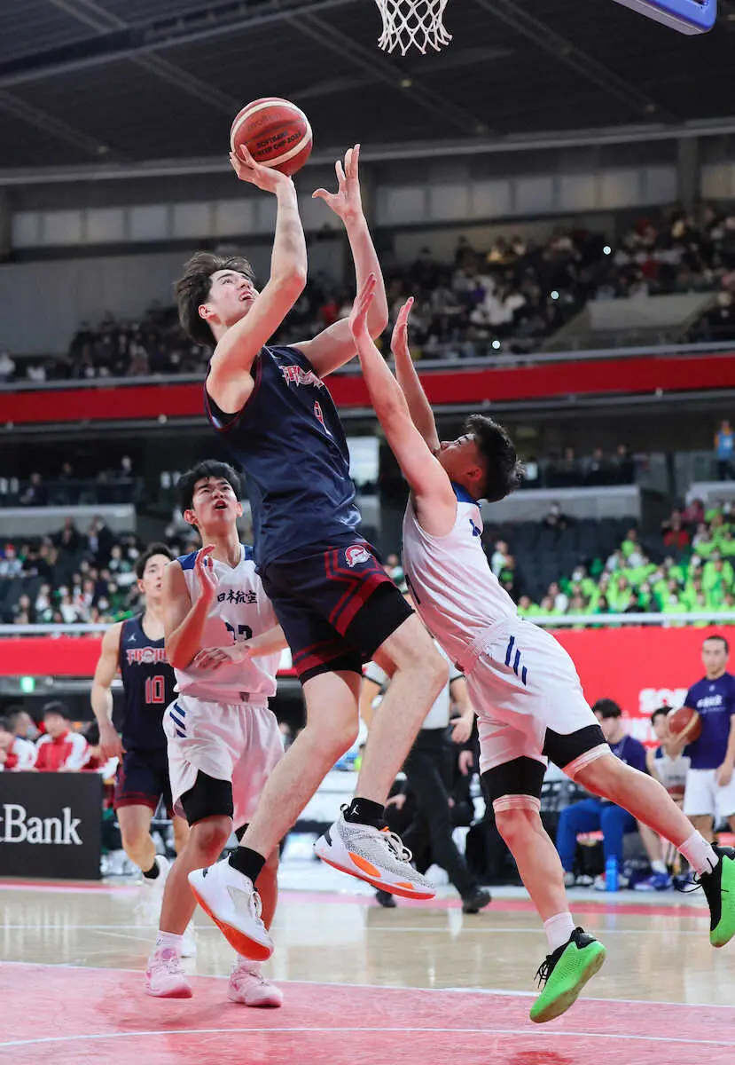 今大会唯一の日本代表経験者の渡辺が、与えられた役割を遂行した。1回戦で28得点した身長2メートル0のナイジェリア人留学生とのマッチアップ。身長2メートル6、足のサイズ36センチの体をゴール下で激しくぶつけ合った。18得点に抑え「相手の留学生を絶対に止めてやろうという気持ちだった。しっかり守ることができた」と汗を拭った。