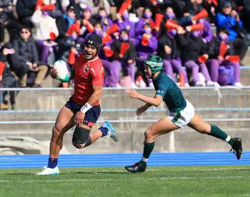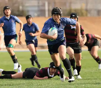 <飯田・盛岡工>前半、盛岡工・高橋はトライを挙げる(撮影・井垣 忠夫)