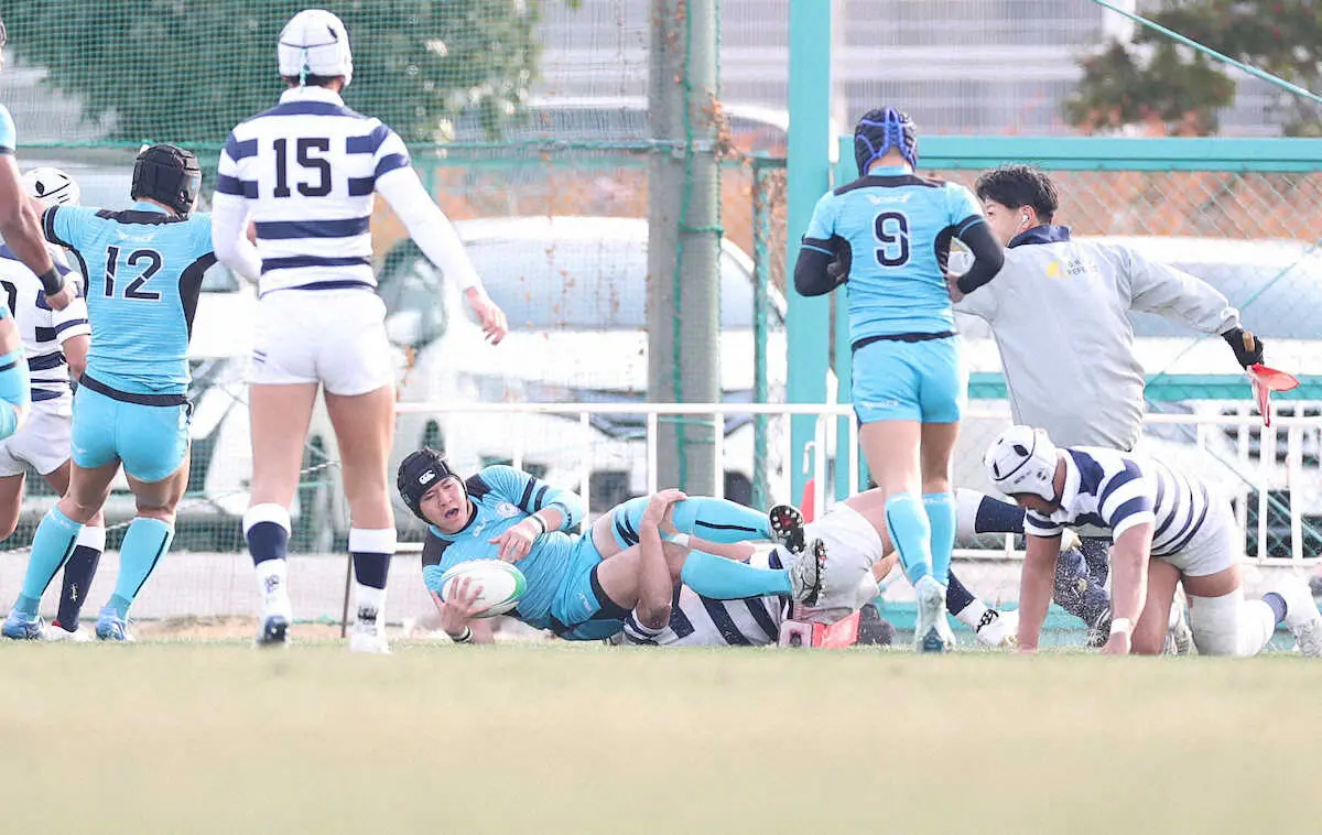 今大会トップクラスの重量を誇るFW陣で相手に圧力をかけ、空いたスペースをうまく突いて計6トライ。PR渡辺侑主将(3年)は「セットプレー時の指先の動きなど、細かいところまで突き詰めてやってきた。(年越しは)めちゃくちゃうれしい」と笑顔を見せた。