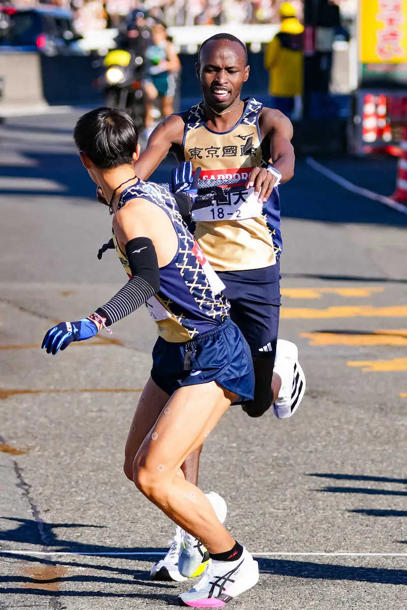 実力ランナーが集った花の2区(23・1キロ)では、創価大の吉田響(4年)がオープン参加の関東学生連合の選手を含め14人抜きの激走で、日本人歴代最速の1時間5分43秒を記録した。12人抜きの東京国際大リチャード・エティーリ(2年)は1時間5分31秒の区間新記録をマーク。1時間5分44秒だった青学大の黒田朝日(3年)を含め3人が、21年ビンセント(東京国際大)の区間記録1時間5分49秒を上回るハイレベルな争いを演じた。