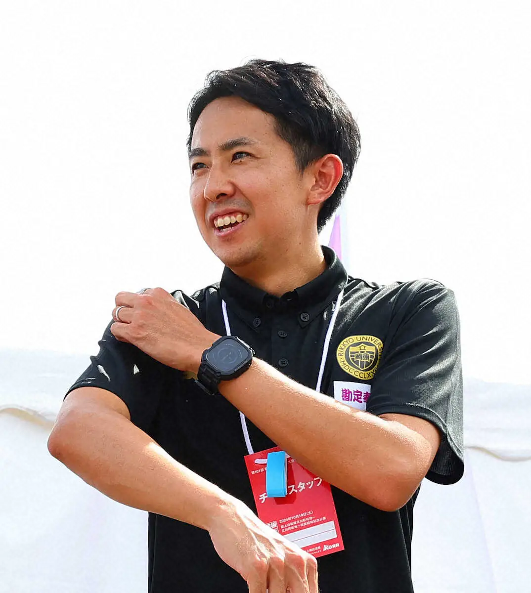 箱根駅伝出場を決め笑顔の立大・高林監督(撮影・藤山 由理)