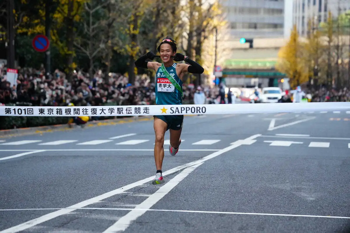 往路首位で復路を発進した青学大がトップを譲らず、2年連続8度目の総合優勝を飾った。10時間41分19秒は大会新記録だった。