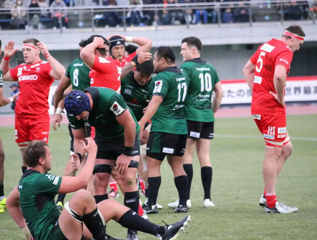 その後は同24分に1トライを返されたものの、ボールの争奪戦では互角以上のファイトで、神戸のアタックを阻止。前半終了間際にはペナルティーでFB石田一貴がきっちりとショットを決めると、後半も先にスコアして相手にプレッシャーを掛けた。