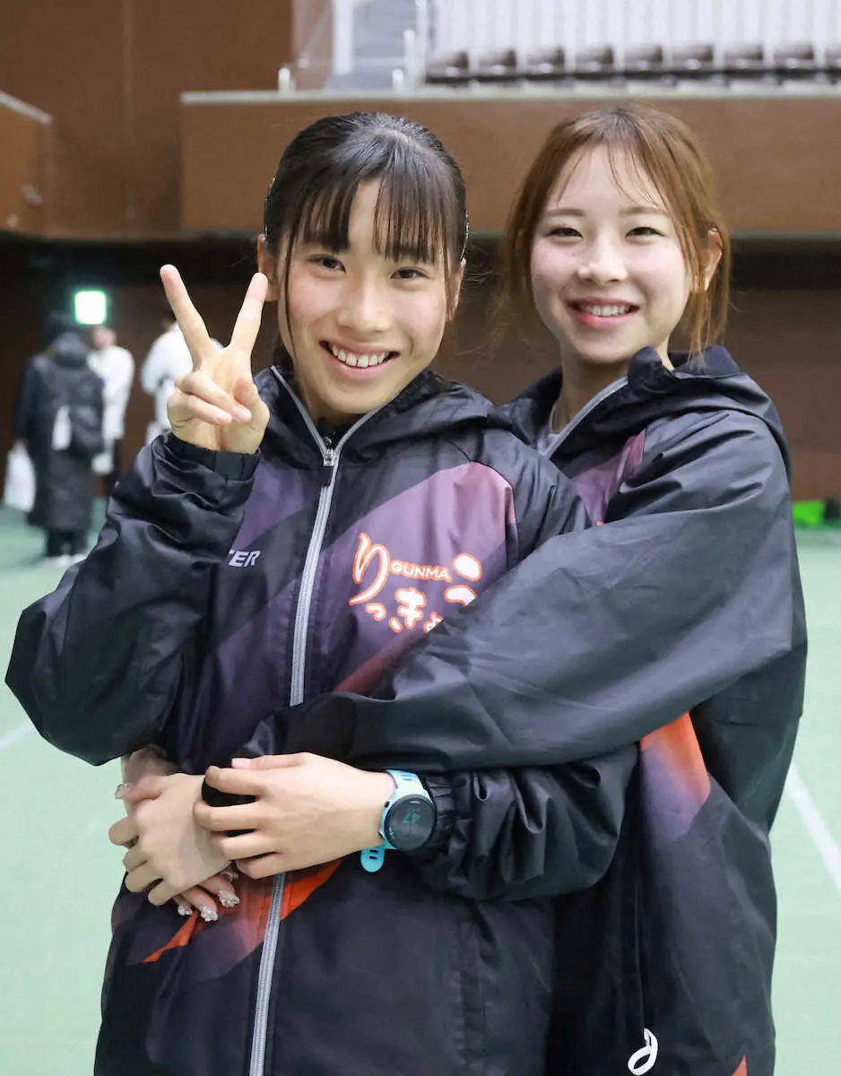 群馬8区の三女・珠衣琉(じゅえる、大類中)が区間17位と踏ん張り、9区の長女・亜莉珠(ありす、センコー)は健闘を称えるように背中をポンッと叩いた。
