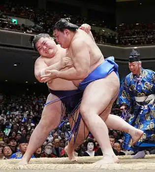 大の里に4戦目で初勝利。昨年の巡業で何度も稽古相手に指名された経験が生き「しっかり前傾が崩れなかったので。一番は立ち合いで右をねじ込まれなかったのが良かった」と納得顔。初日からの5連勝は22年秋場所以来2度目の自己最多タイ。全て三役戦だった序盤で成長の跡を示し「いいんじゃないですか。体がしっかり動いている」と笑みがこぼれた。