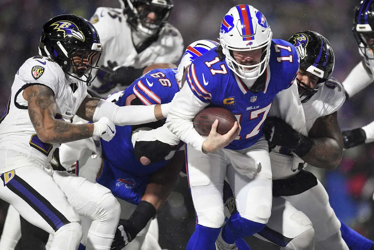 <ビルズ・レーベンズ>第4Q、ビルズLBバーナード(左)がレーベンズTEアンドルースの手からボールをかき出す(AP) Photo by AP 【NFL】ビルズ31年ぶりスーパーボウル進出王手、アレンが2TDラン レーベ… ギャラリーで見る この記事のフォト 2025年01月20日の画像一覧 もっと見る 2025年01月20日の画像をもっと見る