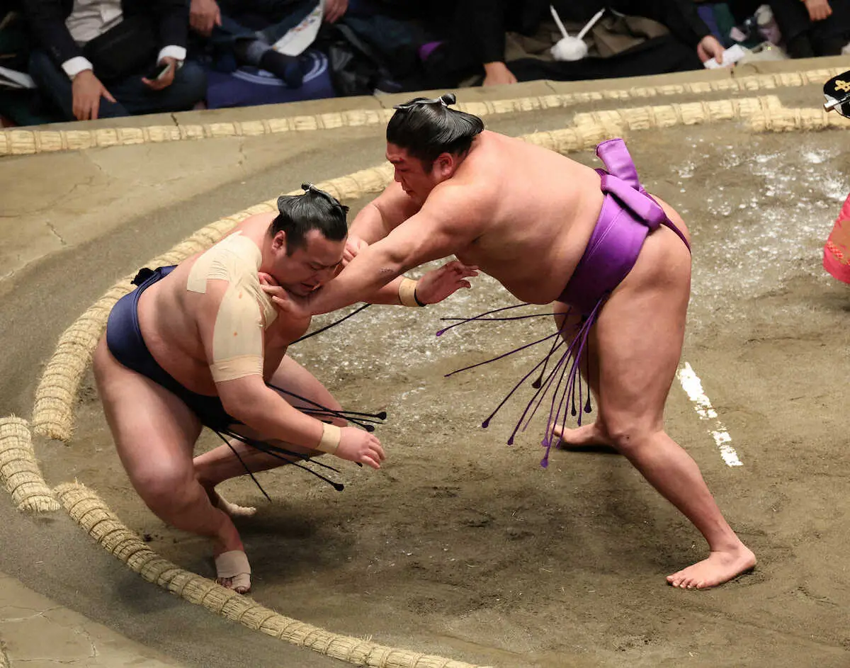 北の若には昨年初場所、十両対戦ではたき込みで敗れた。幕内での初顔合わせで、2年越しのリベンジを達成し「1年あれば体重も増える。特に振り返ることはせず、落ち着いていこうと思った」。22年秋場所の前相撲からスタートした力士人生とは思えない貫禄を漂わせた。