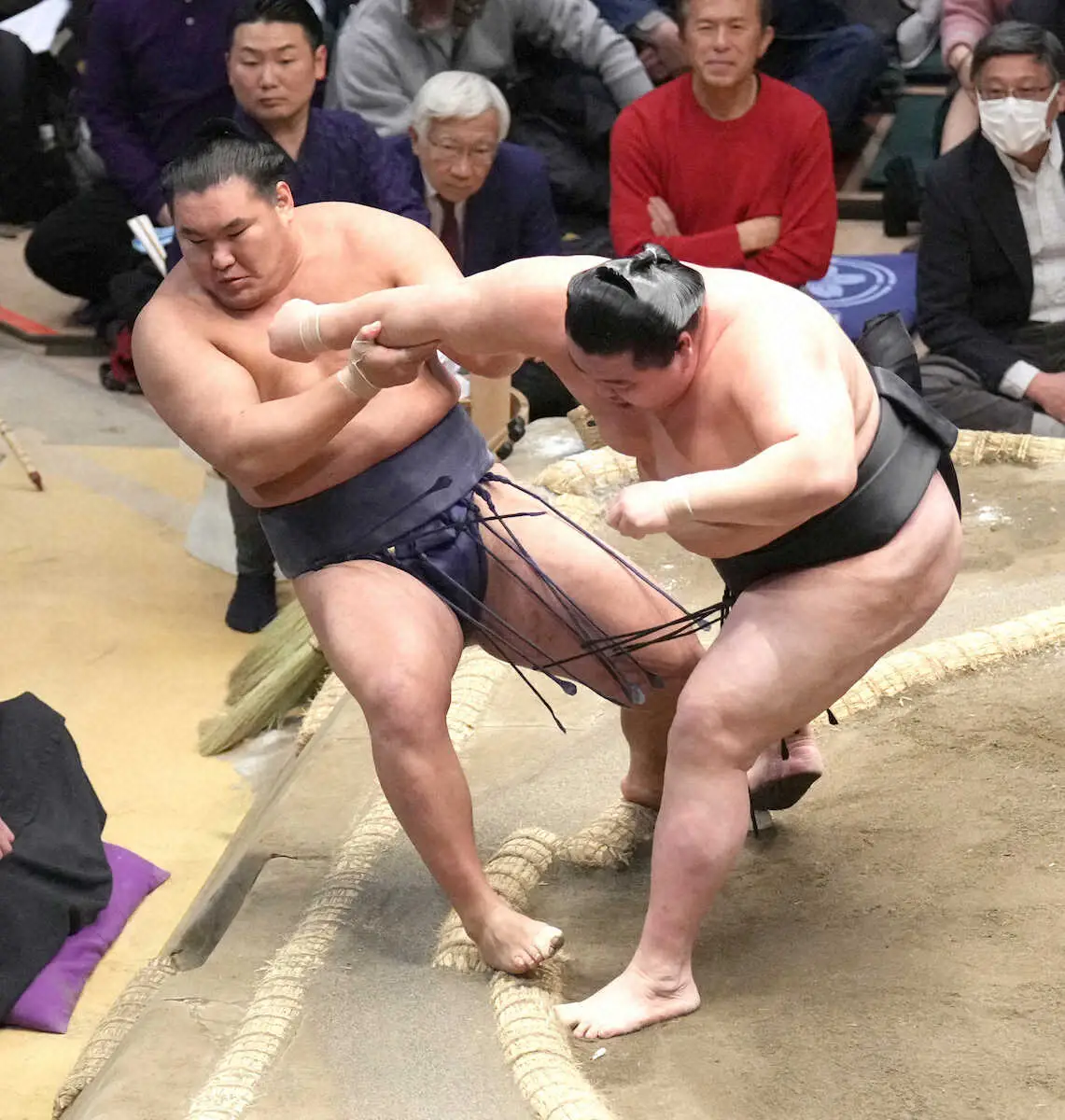 【二所ノ関親方 真眼】豊昇龍は痛すぎる敗戦です。予想通り突き放しての先制攻撃。その選択肢は悪くなかったと思いますが、正代の独特のペースにまんまとはめられた印象です。大関は先手先手で攻めているように見えても、土俵下から見ていると、実際は後手後手に回っていた。足が出ずに相手に十分な圧力がかからない両腕の動き(上突っ張り)になったのも作戦ミスでしょう。