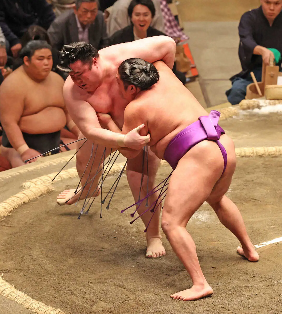 9日目での平幕単独トップは昨年春場所、110年ぶりの新入幕優勝を飾った尊富士以来。日大の1学年下で学生時代から稽古を重ねた尊富士を激しい攻防の末に破り、「終わったと思った」と苦笑い。途中もろ差しを許し、土俵際では右足1本で危うく残す場面もあった。