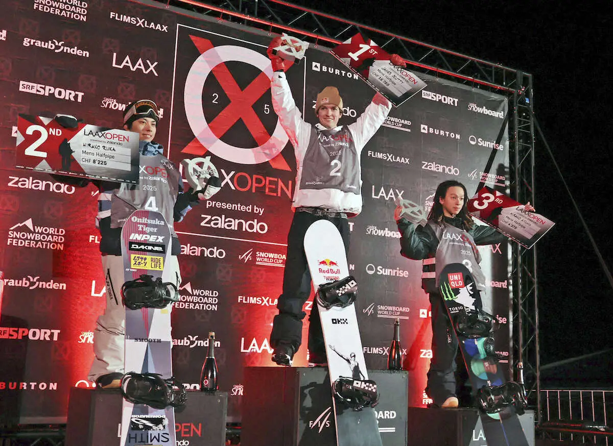 スノーボードのワールドカップ(W杯)は18日(日本時間19日)、スイスのラークスでハーフパイプ第3戦の決勝が行われ、男子は昨季種目別王者の平野流佳(INPEX)が93・75点で2位に入った。北京冬季五輪覇者の平野歩夢(TOKIOインカラミ)が87・00点で3位。