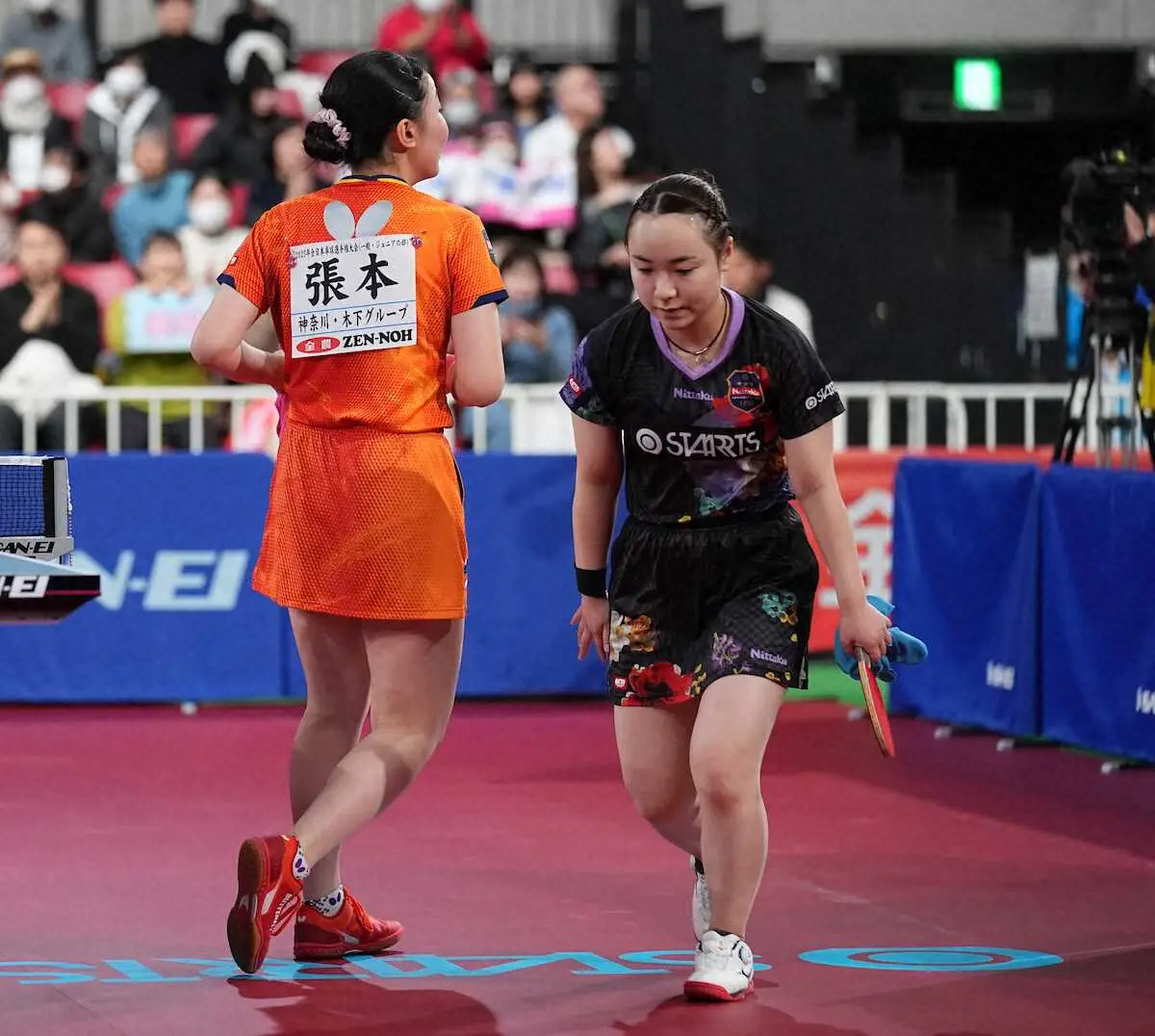 女子シングルス準決勝で世界ランク10位の伊藤美誠(スターツ)が、同6位の張本美和(木下グループ)に0―4で敗れ、3年ぶり4度目の日本一には届かなかった。