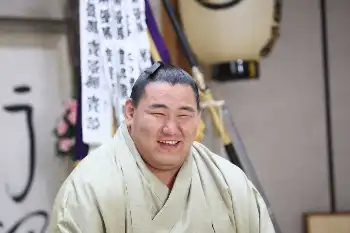 <豊昇龍 一夜明け会見>一夜明け会見に臨む豊昇龍(撮影・西海健太郎)