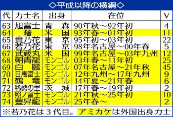 審判部が八角理事長に臨時理事会の開催を要請し、きょう27日の横綱審議委員会の答申を経て29日にも横綱昇進が決定する。周囲の祝福の声には耳をふさぐが「うちの一門は(土俵入りは)雲龍かな」とおどける場面も。場所中には一人横綱だった照ノ富士が引退。1993年初場所以来の横綱空位の危機に直面したが、モンゴルの後輩が見事に後継者に名乗り出た。 (黒田 健司郎)