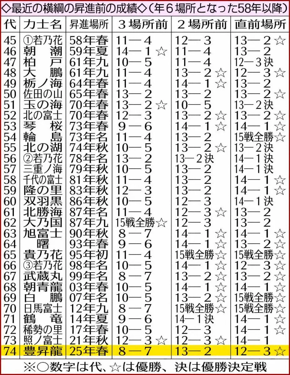 ≪記者の目≫ 1差を逆転し、千秋楽で3勝した豊昇龍の集中力は評価に値するが、成績だけを考えれば異例の昇進と言わざるを得ない。横綱審議委員会の内規では昇進の条件に「2場所連続優勝か、それに準ずる成績」と記されている。豊昇龍は九州場所で13勝を挙げたが、優勝次点。今場所はレベルの高い優勝が求められていたが、12勝の決定戦優勝で3敗はいずれも平幕だった。