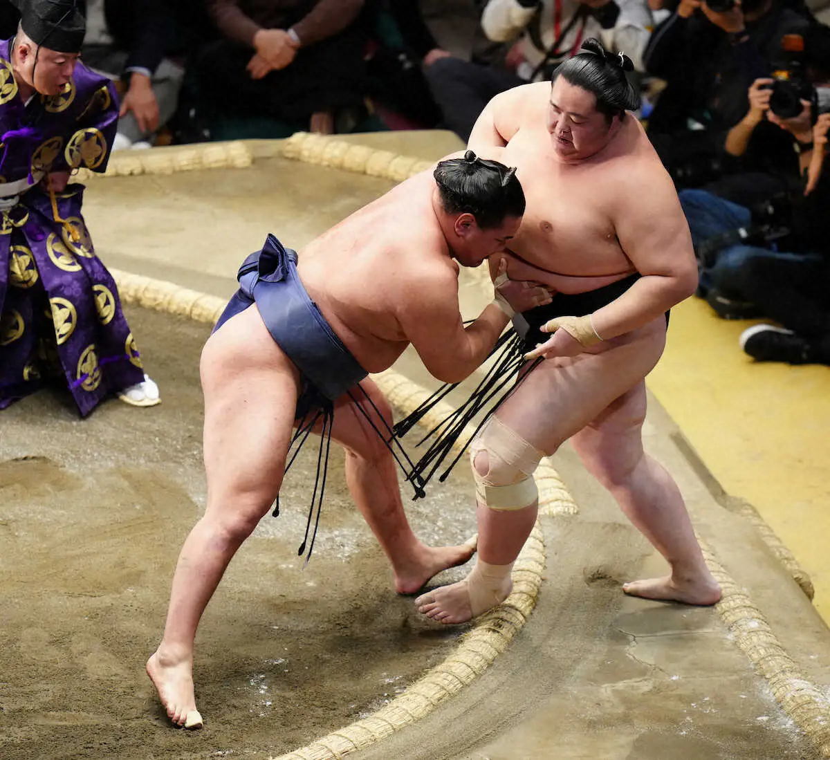 豊昇龍との結びの一番では立ち合いで起こされ、脇の甘さを露呈。もろ差しを許し、あっけなく寄り切られた。