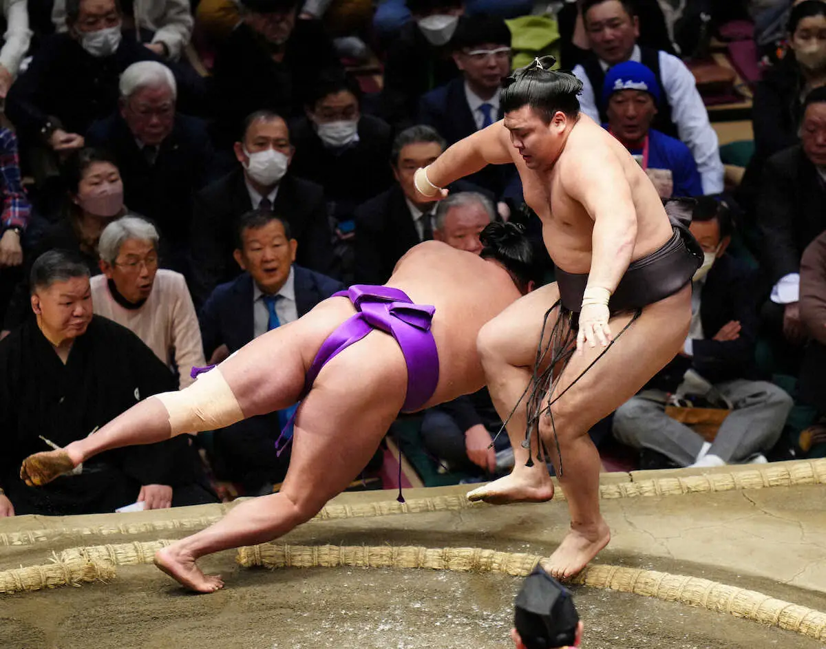 勝った方が敢闘賞の4敗対決は、霧島が尊富士を退けた。