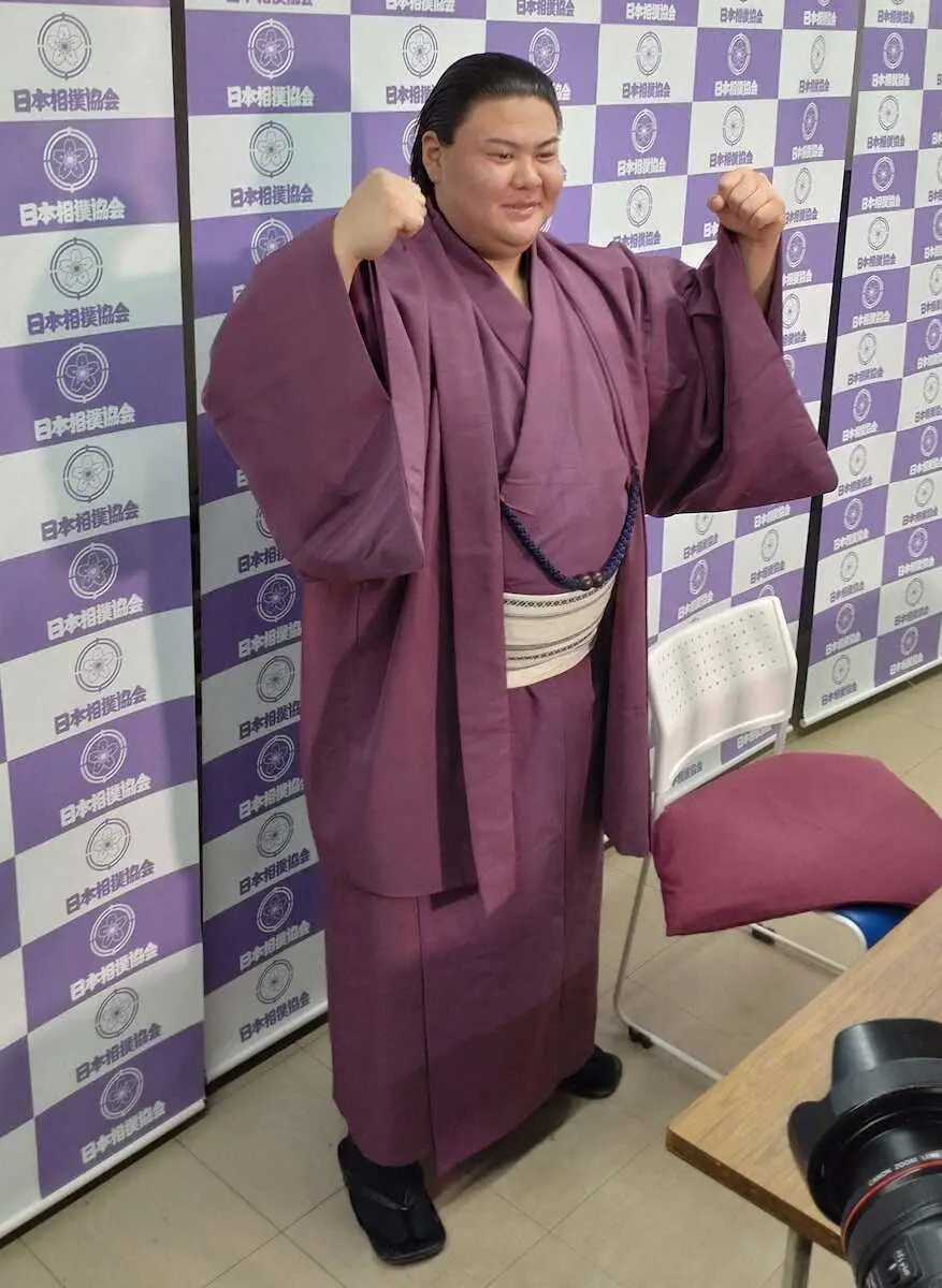 昨年の夏場所では6勝1敗と健闘した。学生時代との差を「立ち合いの速さや重さ」と表現。大関・大の里(24=二所ノ関部屋)や日大の2年先輩で兄弟子の尊富士(25)らに続く学生相撲出身の逸材で着実に番付を上げてきた。
