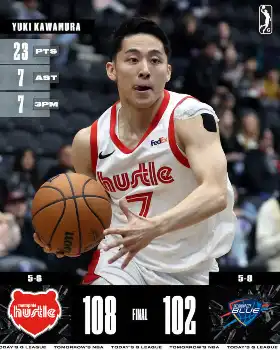 NBA下部のGリーグは29日(日本時間30日)、2月16日(同17日)にサンフランシスコで開催されるGリーグオールスターの出場選手を発表した。ハッスルに所属するポイントガードの河村勇輝(23)がファン投票1位でメンバー入りした。この日は敵地でのブルー戦に先発出場。7本連続して3点シュートを決めるなどチーム最多の23得点、7アシストの活躍で、108―102の勝利に貢献した。