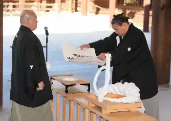 横綱推挙式では相撲協会の八角理事長(元横綱・北勝海)から推挙状と1月30日の「綱打ち」で作られた純白の横綱が手渡された。前日に「綱」の完成のため汗を流した出羽海一門の関取衆や若い衆らの姿を見て「“俺、もう横綱なんだ”という気持ちになった」。一人横綱としての自覚を示し、緊張を力に変えていく。