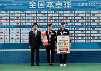 全農杯 2025年全日本卓球選手権大会(ダブルスの部)優勝者に全農から副賞贈呈