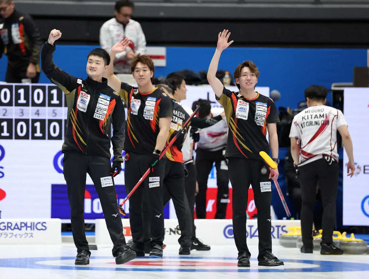 スキップ前田拓海は「プレーオフ(決勝トーナメント)に行けてほっとしている。最後まで粘り強く戦えた」と安どの表情を浮かべた。23年にジュニアチームが昇格する形で結成され、通常は「ロコ・ドラーゴ」のクラブ名で活動。女子で五輪2大会連続メダルのロコ・ソラーレの弟分チームでもあり、「お姉さん方の背中を追うには優勝しかない」と“姉弟V”を誓った。