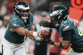 今季史上9人目の2000ヤードラッシャーとなったRBバークリーは、自身初の大舞台で57ヤードを獲得。ポストシーズンを含む今季の獲得ヤードを2504に伸ばし、98年のテレル・デービス(ブロンコス)の2476ヤードを更新するNFL新記録を樹立した。