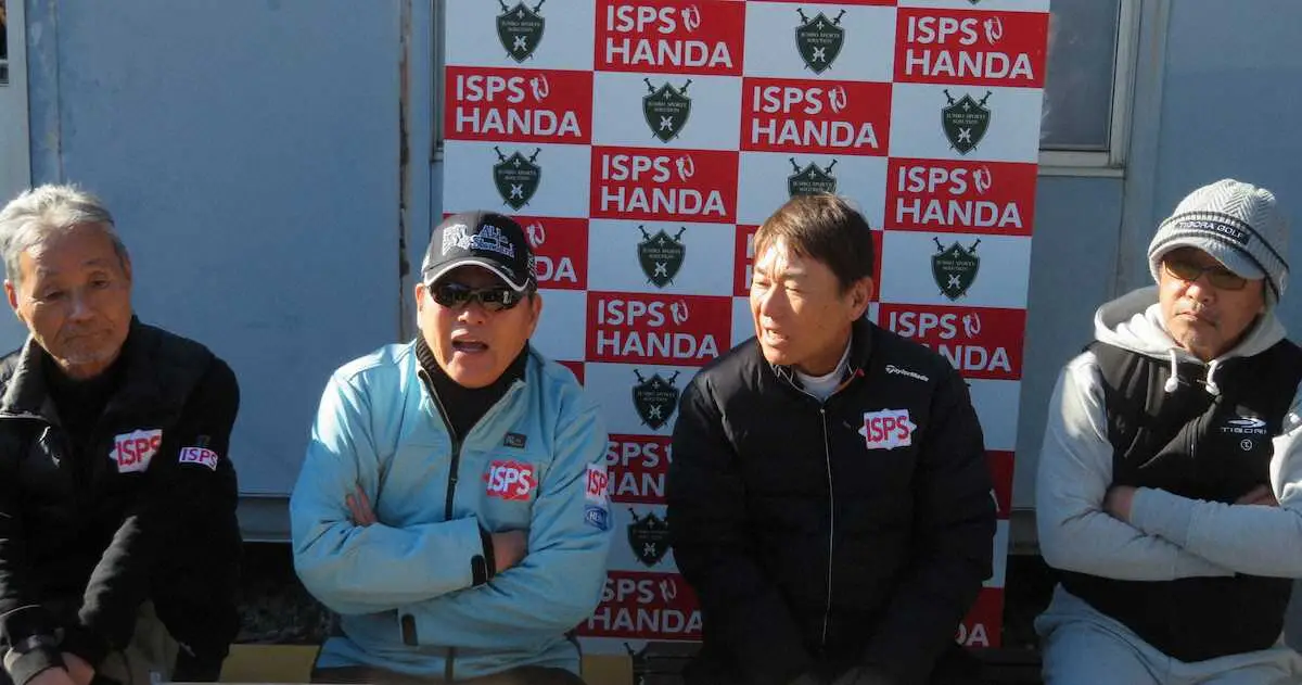 師匠のジャンボ尾崎に代わってセレクションに対応した飯合肇(左)、尾崎健夫(左から2人目)、尾崎直道(左から3人目)、金子柱憲(右)