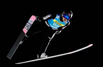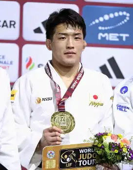 W杯ジャンプ男子個人第22戦で優勝した小林陵侑(中央)