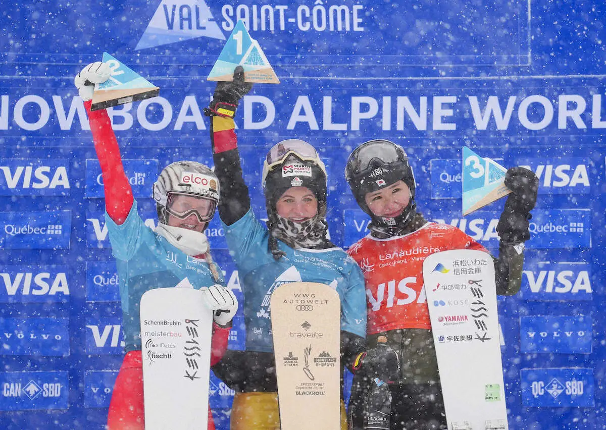 スノーボードW杯は16日にパラレル大回転が行われ、女子で23年世界選手権覇者の(浜松いわた信用金庫)が3位に入った。