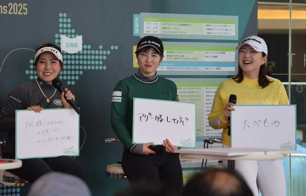 国内女子ゴルフツアーは3月6日に始まるダイキン・オーキッド・レディース(沖縄・琉球GC)で2025年シーズンの幕を開ける。開幕イベントが22日に羽田空港で行われ、青木瀬令奈(32=リシャール・ミル)、山内日菜子(28=ライク)、蛭田みな美(27=ユアサ商事)がトークショーを行い「開幕戦優勝するのは誰?」というテーマでは3人全員が「自分」と回答し、優勝への意欲を示した。