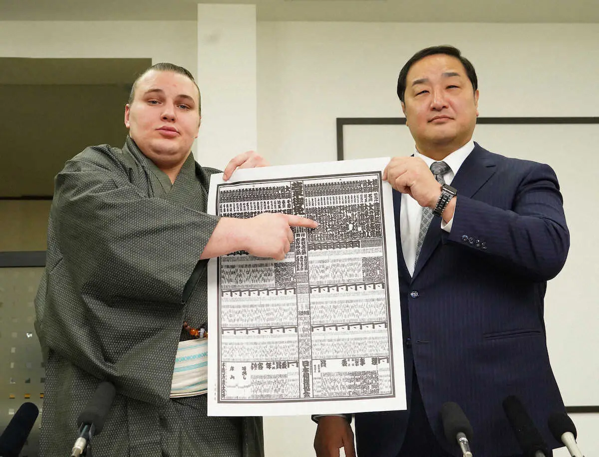 昨年の春場所は同じく9場所で昇進した尊富士が110年ぶりとなる新入幕優勝の快挙を成し遂げた。それに続く活躍を期待されるなか「2桁以上。三賞を獲りたい」と目標を掲げた。故郷はロシアの侵攻を受け3年が経過。化粧まわしなどで平和を訴えてきた20歳は「早く終わってほしい」と切実な思いを述べた。