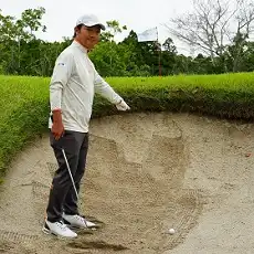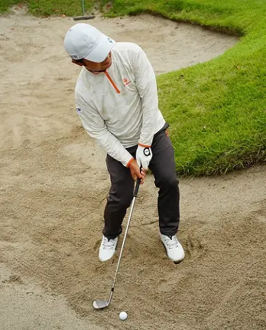 基本的にSWはクラブの中で最もロフトが大きいクラブです。さらにクラブフェースを開くわけですから、かなりの高さが出ます。それにもかかわらず、ボールを高く上げなければならないと思い、余計な動きを入れてしまうため脱出できないと考えましょう。