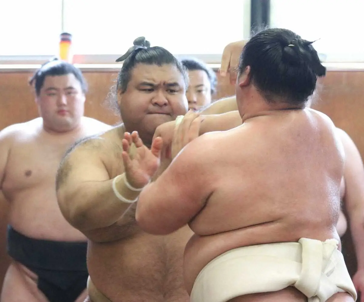大の里「いい稽古ができた」 平戸海に我慢勝ち&スタミナ勝ち 12連勝締めなど三番稽古で17勝4敗