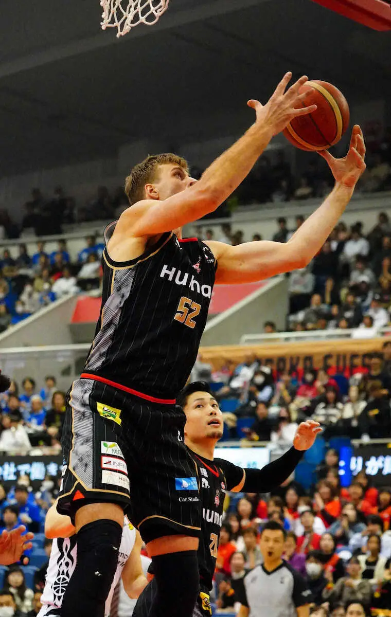今季はリバウンドで苦戦する試合が多かったが、この日は見違えるような空中戦を見せた。マン・オブ・ザ・ゲームに選出されたゲルンは20得点17リバウンドのダブルダブル。レイ・パークス・ジュニア(32)や木下誠(27)との絶妙なパスのやりとりからの得点も目立った。