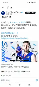 【SVリーグ】東京GBの助っ人ムザイ 相手選手への差別的発言で1試合の出場停止処分 リーグが発表