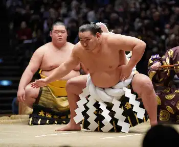 右肘にはサポーターを装着して登場。初場所では2度目の優勝で横綱昇進を決めたが、千秋楽の優勝決定巴戦で負傷したという。「問題ない。その結果、優勝をつかめたので」と強調したが、遊離軟骨による痛みがあるそうで、前日は佐渡ケ嶽部屋への出稽古を中止した。