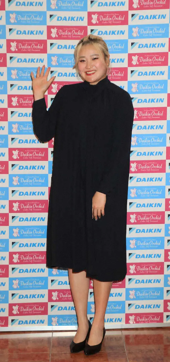 <ダイキンオーキッドレディース前夜祭>ドレスアップして前夜祭に出席した小祝 (撮影・西川祐介)