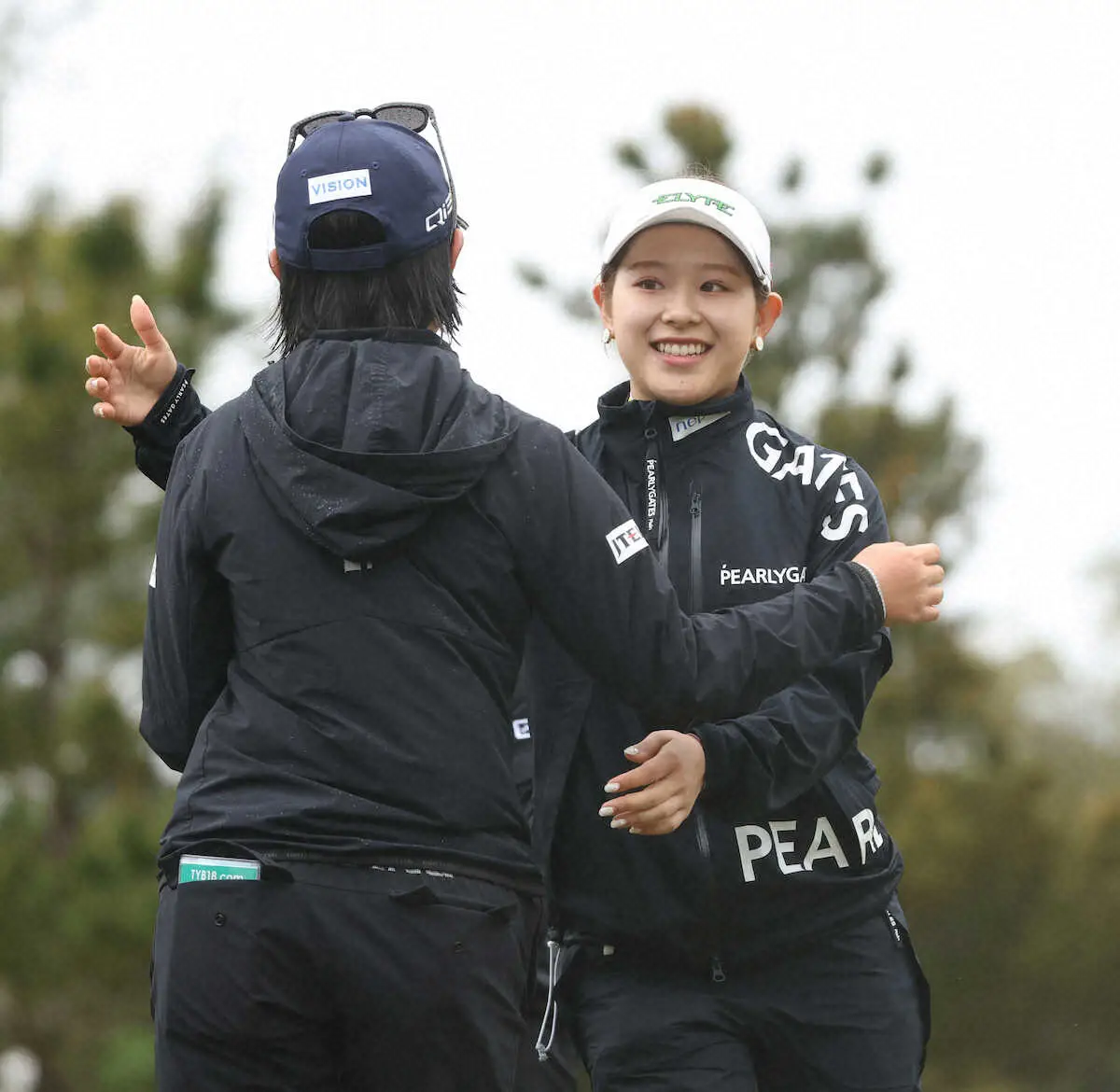 バッグを担いだのは、男子ツアーで活躍した今野康晴プロ。中学生時代から指導している愛弟子を「ショットも良かったけど、それ以上にパットが良かった。雨が降ってもリズムが変わらなかった。ミスがなかったし、ボギーも打ったけど、それ以上にバーディーも取れた。100点に近い」と絶賛した。