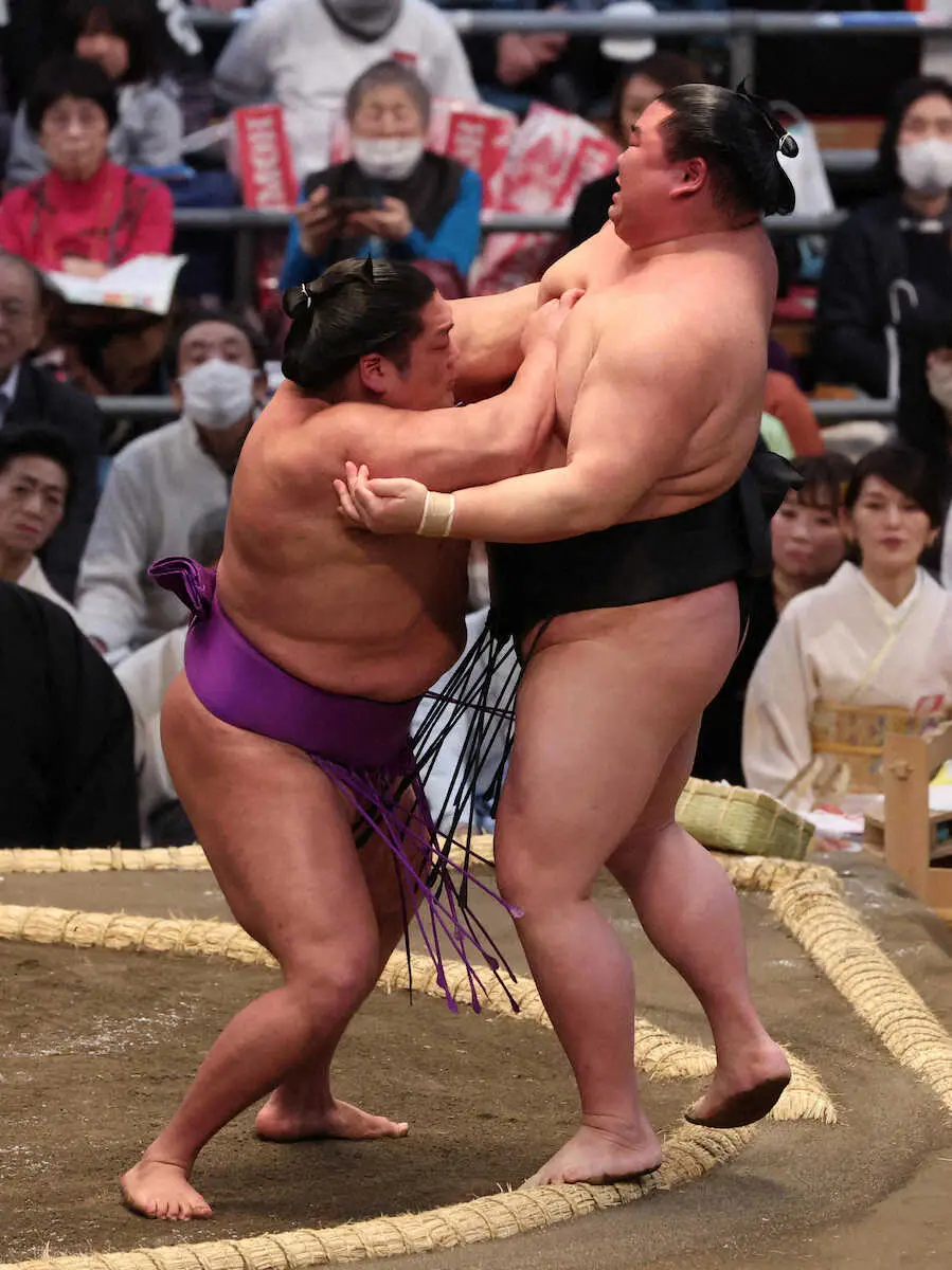 昨年春場所で初優勝した西前頭6枚目・尊富士(25=伊勢ケ浜部屋)は東前頭7枚目・正代(33=時津風部屋)を立ち合いから下からの攻めで起こす。